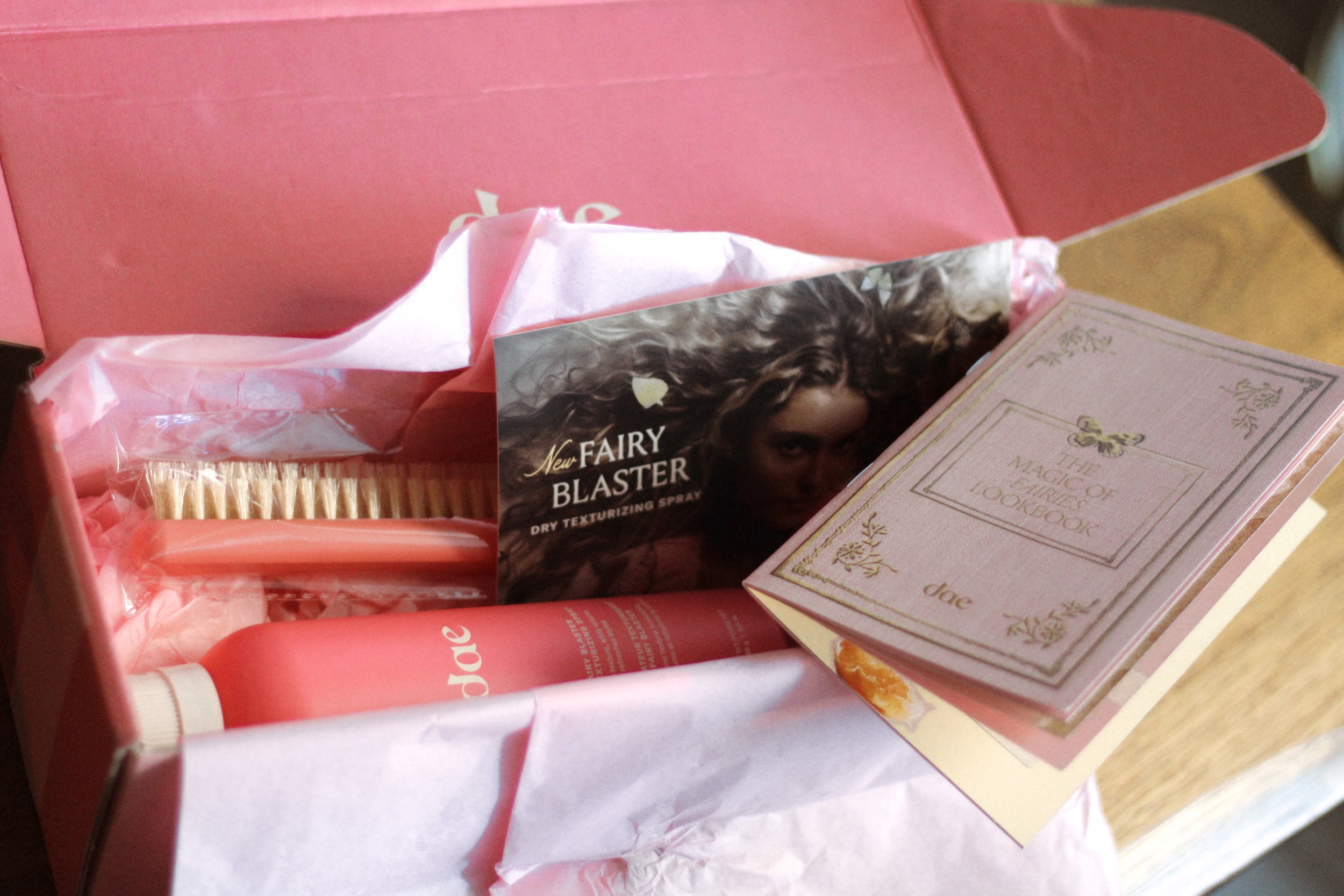 For the launch of Fairy Blaster Dry Texturizing Spray, I designed the complete influencer mailer package from concept to execution. This included creating a custom printed box, branded packing tape, sticker, an informational insert card, and a 24-page lookbook magazine that told the product story through editorial-style layouts and photography. Each element was carefully coordinated to create a cohesive unboxing experience that generated excitement and social sharing among our influencer network.
