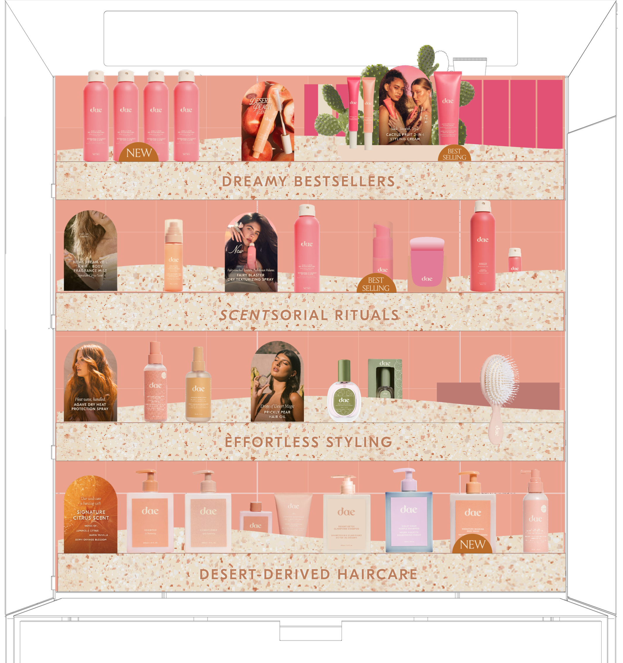 In 2025, I played an integral role in our brand's retail fixture overhaul initiative, helping to completely re-design Dae's in-store presence across all Sephora channels (USA, French Canada, and Kohl’s).